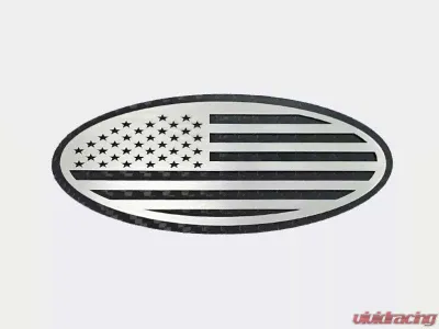 The emblem features a sleek carbon fiber base, which not only adds a modern touch but also ensures long-lasting durability. The brushed American flag top plate complements the carbon fiber beautifully, creating a striking visual that sets your truck apart from the rest.