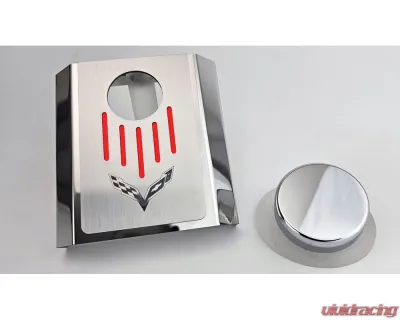 Upgrade the look of your C7 Corvette's engine bay with the stunning Automatic Master Cylinder Cover with Top Plate in a sleek Corvette flag style. Crafted from high-quality polished stainless steel, this cover not only enhances the aesthetic appeal of your vehicle but also promises durability and longevity.