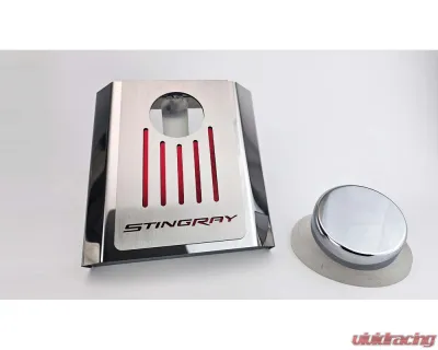 Upgrade your C7 Corvette's engine bay with the stunning Automatic Master Cylinder Cover with Top Plate in a sleek Stingray Style. This premium cover, crafted from high-quality polished stainless steel, is designed to not only enhance aesthetics but also provide long-lasting durability.