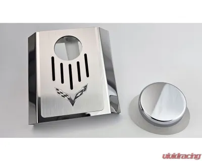 Upgrade the engine bay of your C7 Corvette with the stunning ACC-053124-SBLK Manual Master Cylinder Cover. Designed with precision and style, this polished stainless steel cover features a distinctive Corvette flag design, making it a standout addition to your vehicle.