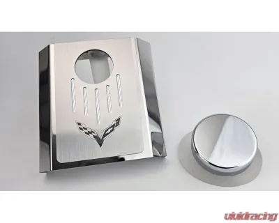 Transform the look of your C7 Corvette's engine bay with the stunning ACC-053124-WHT Manual Master Cylinder Cover. This premium accessory features a sleek polished stainless steel design that showcases a Corvette flag style, making it a perfect fit for any Corvette enthusiast.
