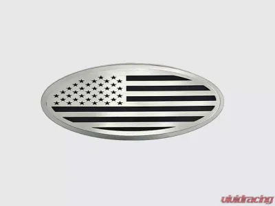The emblem features a polished stainless steel back plate that beautifully complements a brushed American flag top plate. This combination not only adds a touch of elegance but also emphasizes your truck's rugged character.