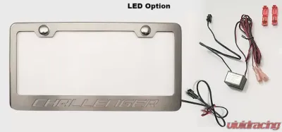 This license plate frame is meticulously handcrafted from durable 304 stainless steel, ensuring it stands the test of time. The brushed finish gives it a sleek, modern look, while the custom vinyl inlay allows you to choose your preferred color for the "CHALLENGER" lettering, adding a personal touch to your ride.