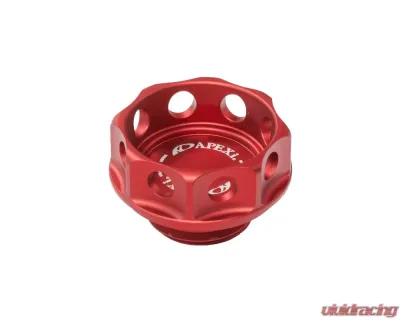 Designed and manufactured in Japan. CNC billet aluminum oil filler cap with A'PEXi features. A'PEXi anodized matte red compliments all engine bay with it's racing heritage concept.