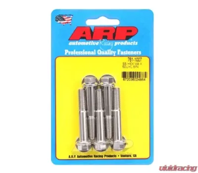 ARP M8 X 1.25 X 50 Hex Stainless Steel Bolts - 10mm Socket, 24 ft-lbs Torque, High Strength Fasteners