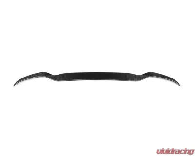 Constructed from high-quality pre-preg carbon fiber, this roof spoiler features a twill weave pattern that not only looks striking but also ensures a lightweight and durable addition to your vehicle. The one-piece design guarantees a seamless integration with the OEM roof spoiler, providing a fit that aligns perfectly with the factory specifications.