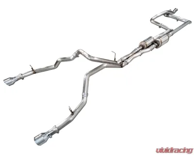The AWE Tuning 3015-32630 Catback Exhaust System is engineered for performance and sound refinement. This full 3" true dual catback setup is constructed from high-quality T304L stainless steel, sourced domestically to ensure durability and longevity. The system features equal-length front pipes and a bespoke AWE X-pipe, designed to deliver a refined exhaust note while minimizing unwanted drone inside the cabin, thanks to AWE's patented 180 Technology.