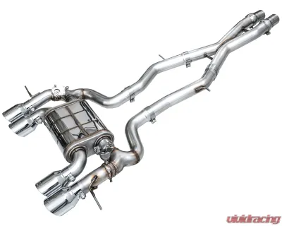The AWE SwitchPath Exhaust features quad 4.5" double-walled, slash-cut tips available in both chrome silver and diamond black, adding a stylish touch to your vehicle’s rear. It includes inlet adapters for easy installation to the factory mid-section, although these are not needed when pairing with AWE Mid-Pipes.