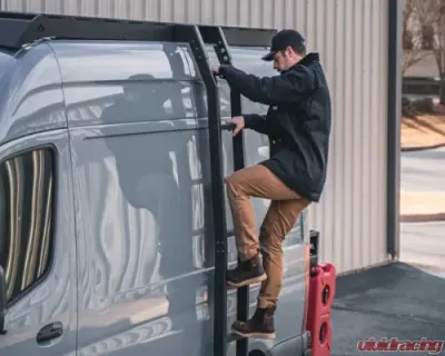 The Mercedes Sprinter 2014 DRIFTR ladder is the ideal companion to your new DRIFTR roof rack. This ladder bolts directly to the rack for a secure fit, and the steps are wider and deeper than any other ladder on the market, making it easier for you to climb up and down while carrying your gear. The ends of every step have added notches to provide extra traction in muddy or wet conditions.