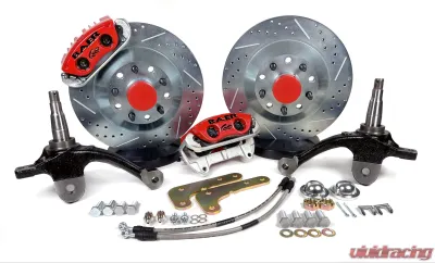This system includes modified stock height spindles, premium bearings with pre-installed races, dust caps, mounting brackets, and all necessary hardware, ensuring a straightforward installation process. It is designed for vehicles equipped with a 15/16" master cylinder to ensure optimal brake performance. For manual brake setups, a 7/8" master cylinder is recommended to reduce pedal effort.