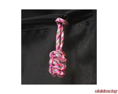 Paracord Zipper Pull Pink Camo Set of 5. Bartact 550 Paracord Zipper Pulls are hand woven in the U.S.A. using 100 percent Made in the U.S.A. 550 Nylon Paracord, the same as our grab handles. Because some zippers are smaller than others, the paracord may not fit, but we've got you covered. Each zipper pull comes with a removable 10mm key ring if you have small zipper heads.
