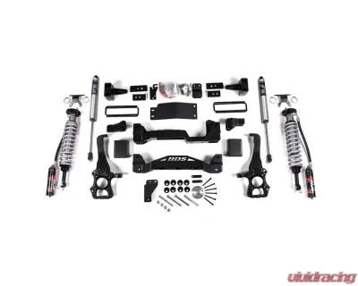 This kit takes advantage of BDS's tried and true high-clearance design for improved ground clearance, strength, and offroad protection while correcting suspension and steering geometry for great on-road handling characteristics. Up front the kit utilizes FOX 2.5 remote reservoir coil-over shocks, high-arched 1/4-inch thick steel crossmembers, multipiece differential relocation brackets and skidplate designed for offroad protection. Steering geometry is corrected at the new taller ride height with a pair of massive CNC-machined ductile iron steering knuckles. These combined with the provided sway bar relocation brackets, brake line brackets, alignment cam bolts, supplied hardware and more provide a comprehensive front suspension lift ready for use and abuse.