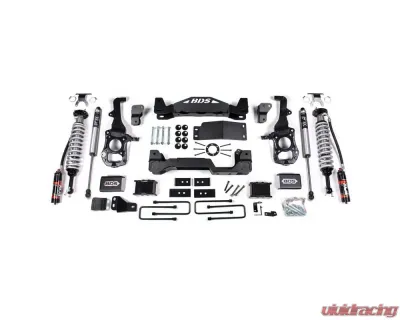 This kit takes advantage of BDS's tried and true high-clearance design for improved ground clearance, strength, and offroad protection while correcting suspension and steering geometry for great on-road handling characteristics. Up front the kit utilizes FOX 2.5 remote reservoir coil-over shocks, high-arched 1/4-inch thick steel crossmembers, multipiece differential relocation brackets and skidplate designed for offroad protection. Steering geometry is corrected at the new taller ride height with a pair of massive CNC-machined ductile iron steering knuckles. These combined with the provided sway bar relocation brackets, brake line brackets, alignment cam bolts, supplied hardware and more provide a comprehensive front suspension lift ready for use and abuse.