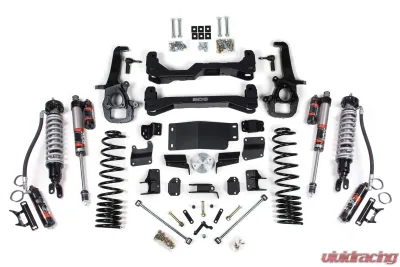 This kit takes advantage of BDS's tried and true high-clearance design for improved ground clearance, strength, and offroad protection while correcting suspension and steering geometry for great on-road handling characteristics. Up front, the kit utilizes FOX 2.5 coil-over shocks, high-arched 1/4-inch thick steel crossmembers along with a multipiece differential relocation brackets and heavy duty skid plates built for offroad protection. Steering geometry is corrected at the new taller ride height with CNC-machined ductile iron steering knuckles and replacement tie rod ends allowing for ESC system compatibility. These combined with the provided sway bar drops, bump stop extensions, stainless steel braided brake lines, CV spacers, supplied hardware and more provide a comprehensive front suspension lift ready for whatever you throw at it.
