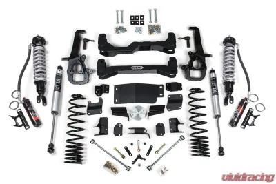 This kit takes advantage of BDS's tried and true high-clearance design for improved ground clearance, strength, and offroad protection while correcting suspension and steering geometry for great on-road handling characteristics. Up front, the kit utilizes FOX 2.5 coil-over shocks, high-arched 1/4-inch thick steel crossmembers along with a multipiece differential relocation brackets and heavy duty skid plates built for offroad protection. Steering geometry is corrected at the new taller ride height with CNC-machined ductile iron steering knuckles and replacement tie rod ends allowing for ESC system compatibility. These combined with the provided sway bar drops, bump stop extensions, stainless steel braided brake lines, CV spacers, supplied hardware and more provide a comprehensive front suspension lift ready for whatever you throw at it.