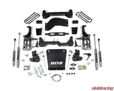 This kit takes advantage of BDS's tried and true high-clearance design for improved ground clearance, strength, and offroad protection while correcting suspension and steering geometry for great on-road handling characteristics. Up front, the kit utilizes torsion bar relocation brackets, high-arched 1/4-inch thick steel crossmembers along with a multipiece differential relocation brackets and heavy duty skid plates built for offroad protection. Steering geometry is corrected at the new taller ride height with CNC-machined ductile iron steering knuckles. These combined with the provided sway bar links, bump stop extensions, stainless steel brake lines, CV spacers, supplied hardware and more provide a comprehensive front suspension lift ready for whatever you throw at it.