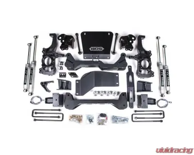 This kit takes advantage of BDS's tried and true high-clearance design for improved ground clearance, strength, and offroad protection while correcting suspension and steering geometry for great on-road handling characteristics. Up front, the kit utilizes torsion bar relocation brackets, high-arched 1/4-inch thick steel crossmembers along with a multipiece differential relocation brackets and heavy duty skid plates built for offroad protection. Steering geometry is corrected at the new taller ride height with CNC-machined ductile iron steering knuckles. These combined with the provided sway bar drops, stainless steel brake lines, supplied hardware and more provide a comprehensive front suspension lift ready for whatever you throw at it.