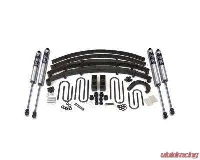 Up front the lift kit includes Glide-Ride leaf springs, 4" steering arm for steering correction, brake line brackets and precision tuned NX2 nitrogen charged shocks. In the rear this kit utilizes a high-strength lift block, longer u-bolts and a matching set of NX2 Nitro shocks.