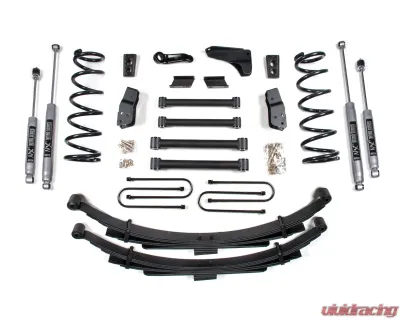Improve the ride and style of your 2003-2007 Dodge RAM 2500 and 3500 4WD diesel powered truck with this 6-inch lift kit from BDS Suspension. Designed to improve stance, performance, and capability, this kit includes everything necessary to set your truck up right with clearance for up to 36" tires. BDS engineered new lower control arms are longer than stock to rotate the axle for proper alignment and built a relocation mounting bracket to flatten out the angle of the upper control arm to maintain your factory handling characteristics.Up front the lift kit includes diesel-specific Pro-Ride coil springs, all four control arms plus relocation bracket, forged drop pitman arm and track bar bracket for steering correction, bump stops, sway bar links, and precision tuned NX2 or FOX 2.0 nitrogen charged shocks. In the rear this kit utilizes heavy duty cast steel blocks, longer u-bolts, and a matching set of NX2 Nitro or FOX 2.0 Performance shocks.A pair of full-length, diesel-specific, progressive rate Pro-Ride coil springs are supplied to provide the correct lift height and smooth, predictable ride across various terrains. Manufactured from high tensile steel, our direct OE replacement coil springs are engineered with properly sized wire diameter. This results in maximum reliability without premature coil bind.To optimize steering geometry once lifted, a forged drop pitman arm is used to minimize the steering angle and pair it with a heavy duty track bar drop bracket to keep them in phase through suspension travel while recentering the front axle.