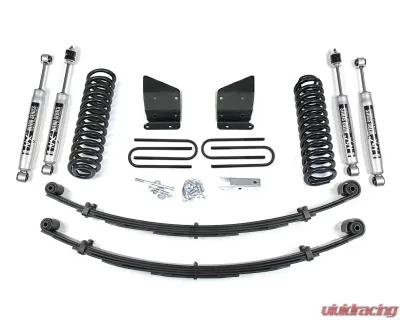 In the rear the base kit utilizes a high-strength lift block, longer u-bolts and a matching set of NX2 Nitro shocks.