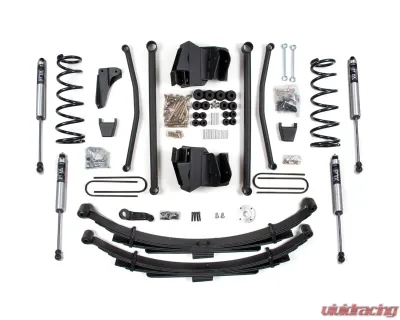 Up front the lift kit includes diesel-specific Pro-Ride coil springs, all four control arms plus mounting bracket, forged drop pitman arm and track bar bracket for steering correction, bump stops, sway bar links, and precision tuned NX2 or FOX 2.0 nitrogen charged shocks. In the rear this kit utilizes heavy duty cast steel blocks, longer u-bolts, and a matching set of NX2 Nitro or FOX 2.0 Performance shocks.