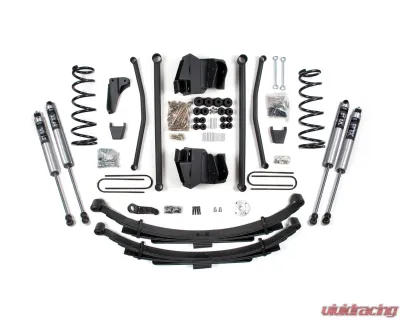 Up front the lift kit includes diesel-specific Pro-Ride coil springs, all four control arms plus mounting bracket, forged drop pitman arm and track bar bracket for steering correction, bump stops, sway bar links, and precision tuned NX2 or FOX 2.0 nitrogen charged shocks. In the rear this kit utilizes heavy duty cast steel blocks, longer u-bolts, and a matching set of NX2 Nitro or FOX 2.0 Performance shocks.