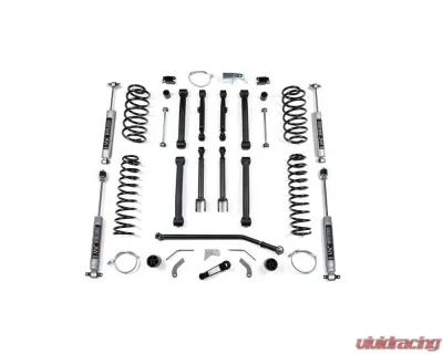 The rear kit utilizes Glide-Ride coil springs for maximum travel, stainless braided brake line, rear track bar relocation bracket, BDS ultimate sway bar disconnects for the most possible articulation, and heavy duty front upper adjustable and fixed length lower control arms. Finish of the kit with your choice of specially tuned NX2 nitro series gas shocks or FOX 2.0 IFP performance series gas shocks to offer improved damper performance.