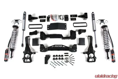 This kit takes advantage of BDS's tried and true high-clearance design for improved ground clearance, strength, and offroad protection while correcting suspension and steering geometry for great on-road handling characteristics. Up front the kit utilizes FOX 2.5 remote reservoir coil-over shocks, high-arched 1/4-inch thick steel crossmembers, multipiece differential relocation brackets and skidplate designed for offroad protection. Steering geometry is corrected at the new taller ride height with a pair of massive CNC-machined ductile iron steering knuckles. These combined with the provided sway bar relocation brackets, brake line brackets, alignment cam bolts, supplied hardware and more provide a comprehensive front suspension lift ready for use and abuse.