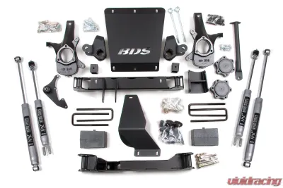 Designed to improve stance, performance, and capability, the BDS 6-inch lift kit for the 1999-2006 Chevy Silverado and GMC Sierra 1500 4WD is a must have upgrade. For maximum ground clearance, BDS designed a No Torsion Bar Drop System where the torsion bars are mounted directly to the top of the lower a-arm eliminating the need to drop the torsion bar cross-member. This kit includes everything necessary to set your truck up right with clearance for up to 35" tires.