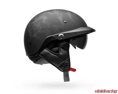 Looks can be deceiving. At first glance our Pit Boss may look like many other half-helmets in the cruiser category. Scratch the surface, though, and you'll discover quality that sets it above the competition: A lightweight TriMatrix (carbon/Kevlar/fiberglass composite) shell, an innovative Speed Dial fit system that prevents the "lift and slippage" plaguing most other half-helmets, a drop-down internal shield in Dark Smoke that provides on the fly protection from the sun, and a removable neck curtain offering cold weather protection and speaker pockets for a convenient way to add audio enhancement. Snug the Pit Boss onto your head and thumb the starter button - one ride will confirm the Pit Boss as the King of the Road.