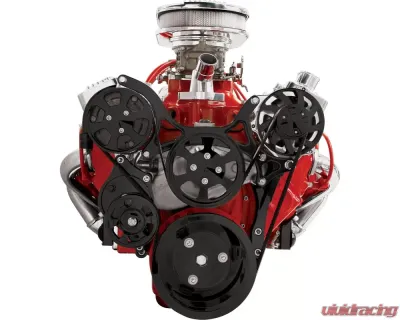 Upgrade your Small Block Chevrolet with the Billet Specialties Black Anodized Tru Trac Serpentine System. This system is designed to enhance both the performance and aesthetics of your engine bay while ensuring a perfect fit and easy installation.