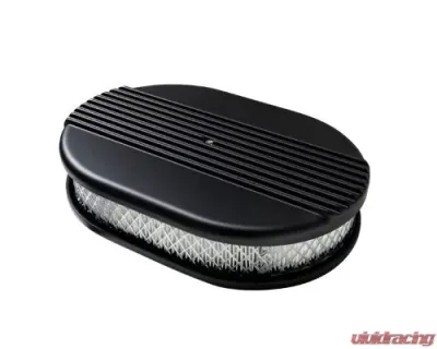Revitalize your engine bay with the Billet Specialties Small Satin Black Powder Coated Oval Ribbed Air Cleaner, a perfect blend of style and functionality. Designed specifically for standard 4-barrel carburetors, this air cleaner not only enhances the look of your vehicle but also ensures optimal airflow for your engine.