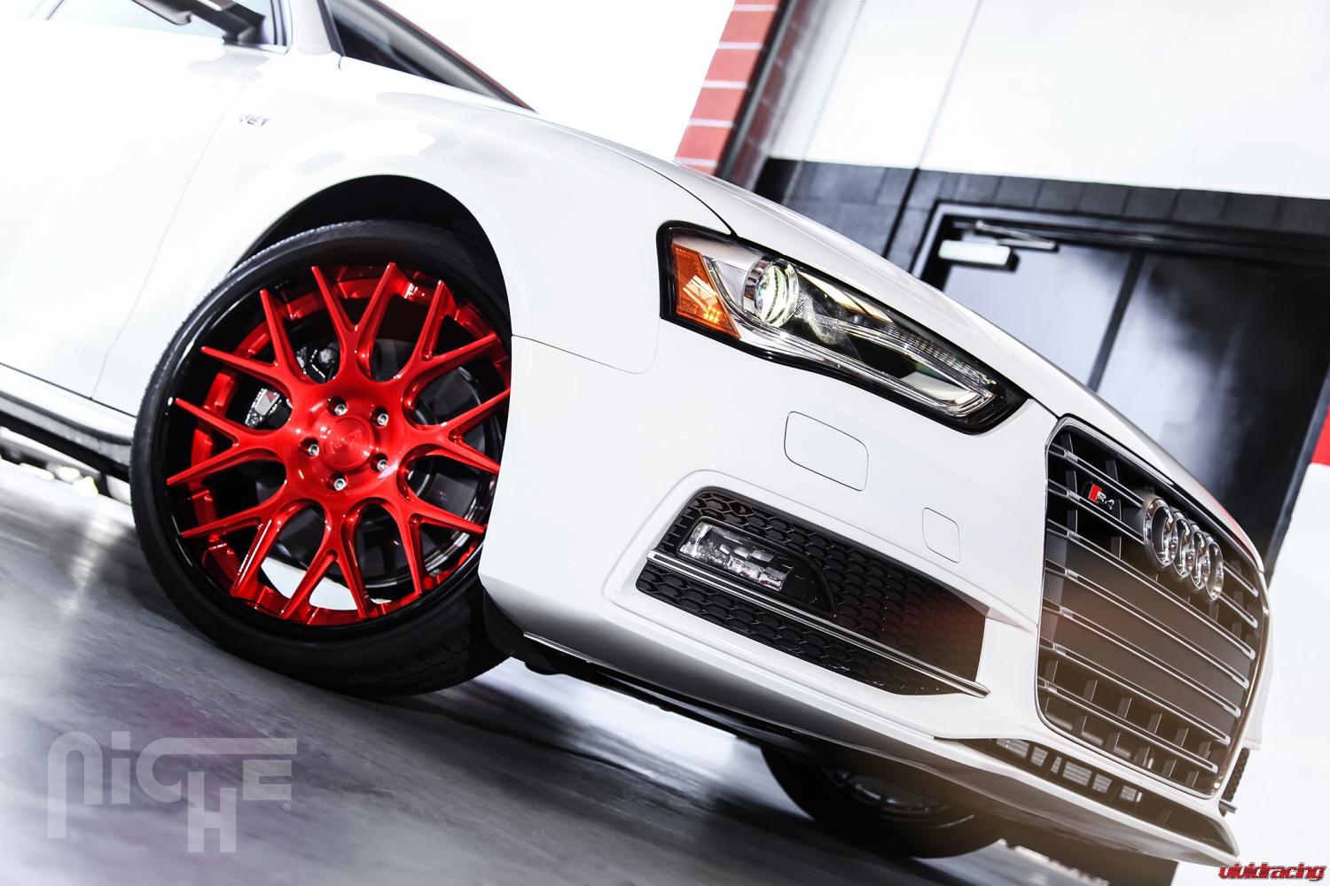 Check out this new body 2011 Audi A4 sporting a set of Niche wheels in 2 new finishes they now offer. You can see the centers looking fresh in both chrome red or chrome blue on a gloss black lip. The Niche Circuit wheels are a 20×9.0 and a 20×10 both with a 43mm offset. They feature Pirelli Tires in a 245/30/20 and a 255/30/20. The question is, which would you want? Check out more Niche Wheels Here.