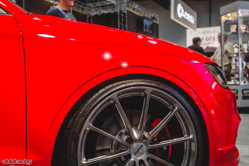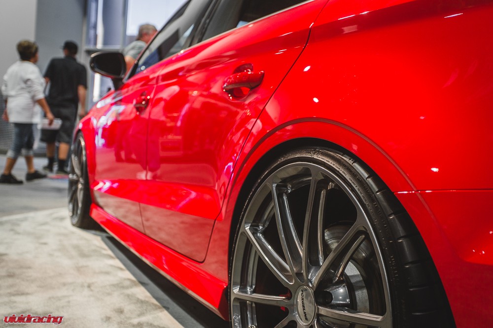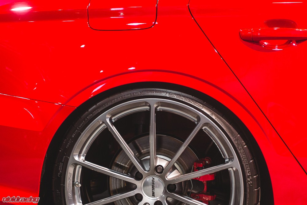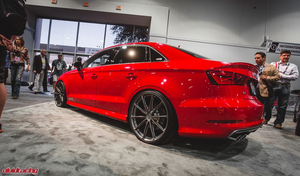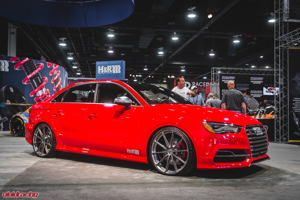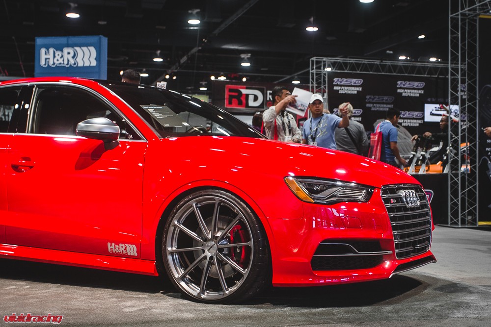 Our 2014 SEMA coverage is never over! Thats because there was so much good stuff that we like to stretch it out to help you remember, if you can remember what was there. H&R displayed this super sick new Audi S3 Sedan in their booth. Having personally owned a 2.0T Audi A3 wagon, I love this car! I have also used H&R springs on other vehicles such as our Project 991 Turbo, Project BMW M5, Project BMW M3, and even the wifes VW TDI Touareg. The H&R springs always give a great ride quality while enhancing the handling with that lowered look. The 2015 Audi S3 featured in Misano Red Pearl paint was stanced on a set of Forgeline GT1 Wheels 20×8.5 all around. The car also had all the H&R add-ons such as their H&R Super Sport Springs, H&R TRAK+ Wheels Spacers, and H&R Sport Sway Bars Front & Rear. Check out all the H&R Products Here and other SEMA Photos Here.