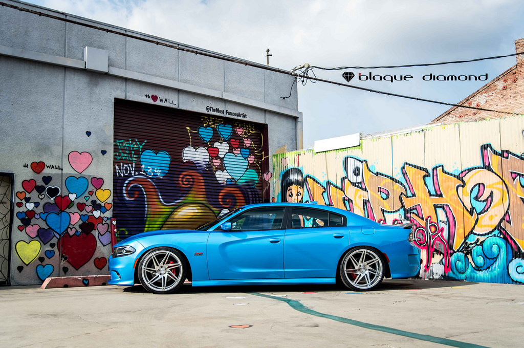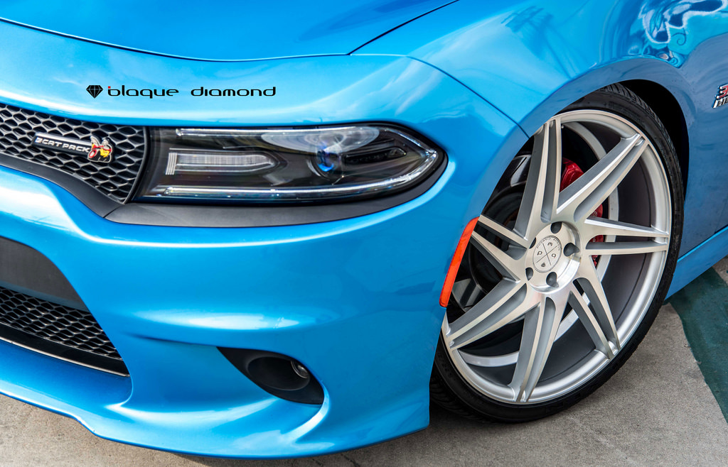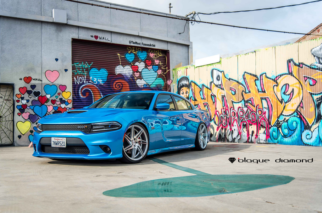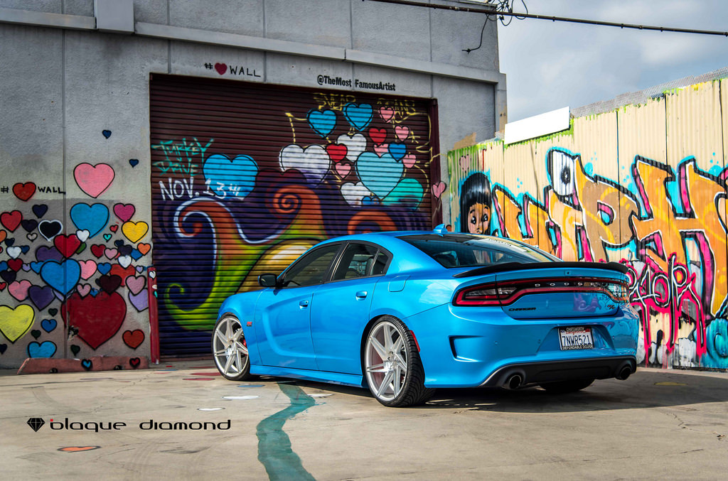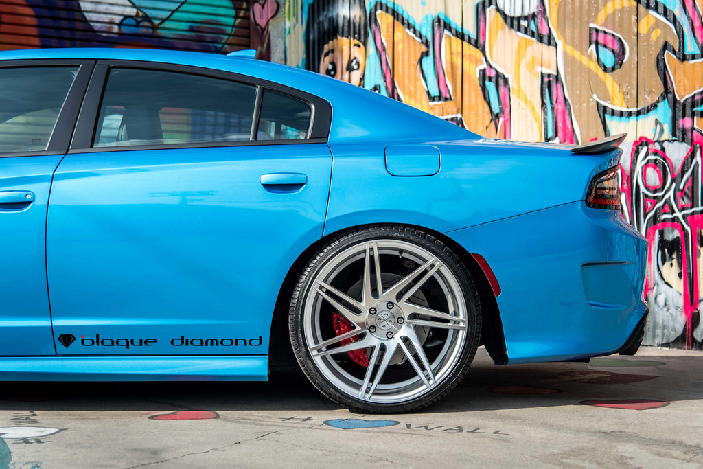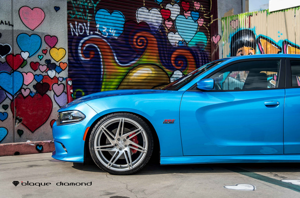 Being that Vivid Racing supplies parts to enthusiasts all across the globe, we get to see tons of cool cars with aftermarket parts. One of the most recent cars we have the pleasure of sharing with you is a 2015 Charger Scat Pack sitting on a set of Silver 22” Blaque Diamond BD-1 wheels. The Silver really sets off the beautiful Blue paint of the Charger, and the design of the BD-1 wheels give it a modern look.