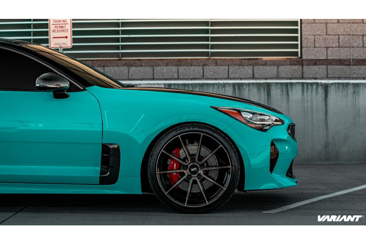 With more than 15 years of aftermarket and custom wheel experience, Variant Wheels’ mission is to provide the best service, quality products, and stylish designs at competitive prices. Variant Wheels specializes in manufacturing forged and flow-formed products using cutting-edge vertical technology. The brand also specializes in staggered fitments and boasts a wide range of available wheel widths for the look you want. Its passion doesn’t stop there, though. It is the foundation for the entire company and extends to Variant’s photography and marketing as well. That being said, Variant Wheels has just released new imagery showing off a Kia Stinger on Double Dark Tint Argon wheels.
