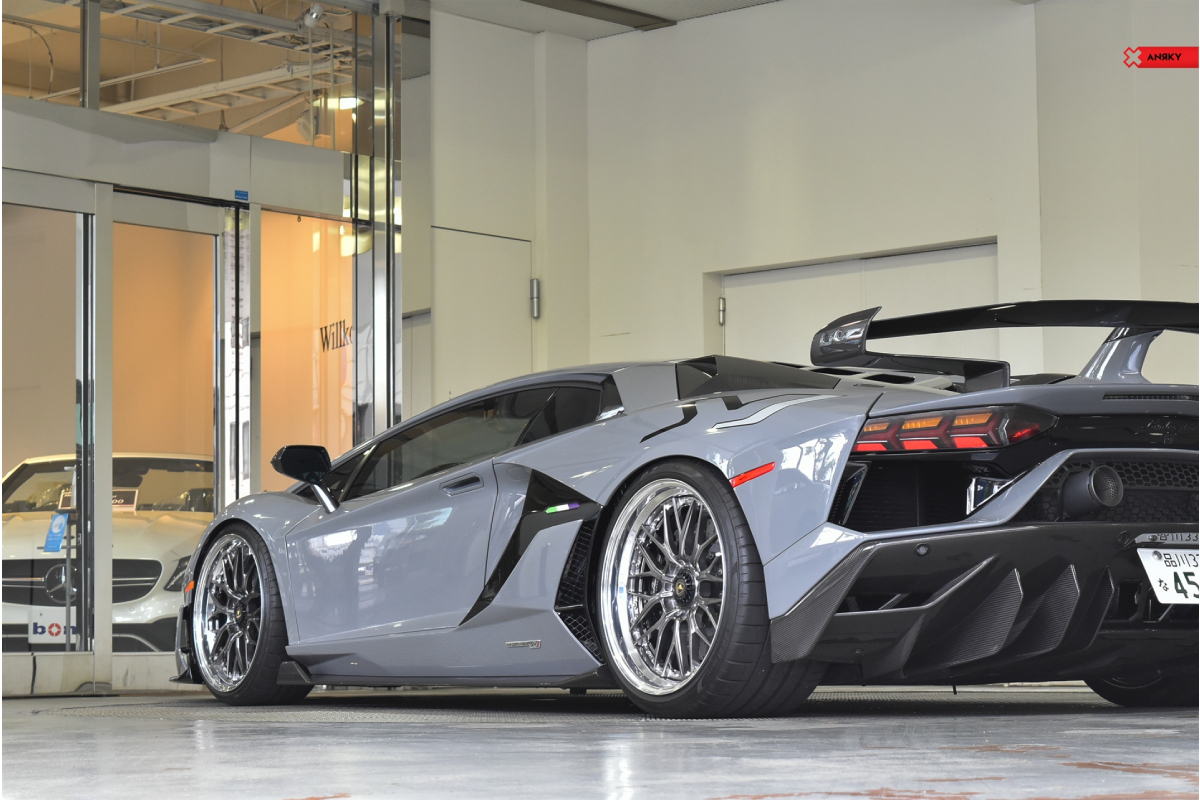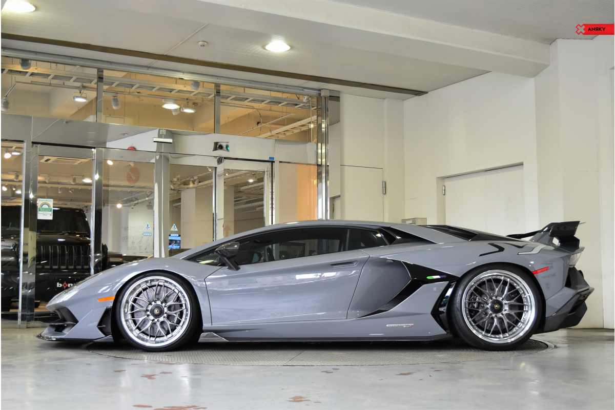 Lamborghini built the Aventador SVJ to take challenges head-on with a combination of cutting-edge technology and extraordinary design language. It is made from ultra-lightweight materials developed for maximum performance with enhanced aerodynamics, including a fully redesigned front end, bigger side skirts, and an omega-shaped rear wing, incorporated into a carbon-fiber chassis. While the factory Leirion Y-spoke forged wheels are certainly fitting to the supercar, sometimes you just want to add some personalization to your ride. That’s where ANRKY comes in with its well-regarded RETRO Series RS1 wheels. The RS1 wheel features a clean and simple design with a step lip that exudes a super retro aesthetic with a modern twist – a look that’s perfect for supercars.