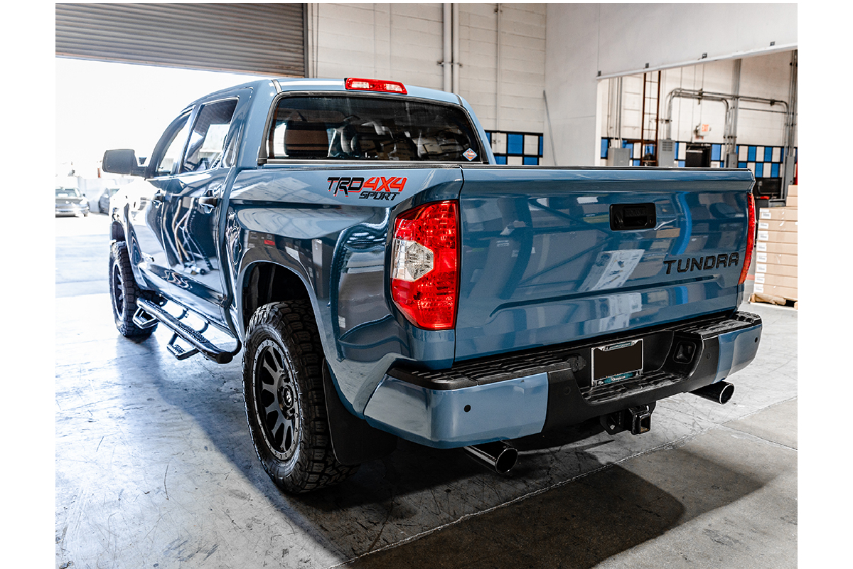 The VR Performance Valvetronic system was designed in-house right here in Gilbert, Arizona using state-of-the-art 3D scanning and modeling methods. It was initially built and tested on our very own Toyota Tundra for thousands of miles to ensure performance and power gains. This exhaust is crafted from 304 stainless steel that has been fully TIG welded for durability and then bead blasted for a unique finish. The exhaust bolts right up to the factory headers on your Tundra and uses an OEM-style rear-over-axle section that ends with dual-exit exhaust tips in a stunning black chrome finish. Each kit comes with all of the necessary hardware for a seamless installation so you can be on your way to a whole new driving experience in no time.