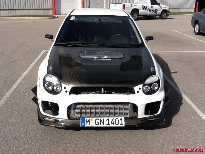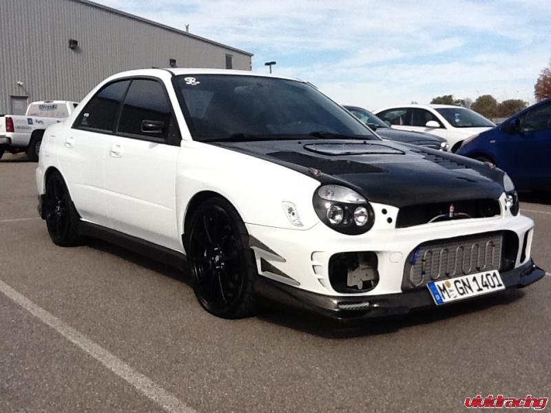 This customer of ours shot over these photos of his fully done up Subaru WRX Impreza. The 2002-2003 bugeye version started its life with a 2.0L turbo and 5speed transmission. Now that he is done with it, a new 6speed tranny and 2.5L engine from a STI is in place. Inconjunction with other modifications, this beast is putting down 600 horsepower! Featuring a Seibon carbon fiber lip kit front and rear, he has also added a CW style carbon fiber hood with a trick mod to view his engine. The outside sports some custom painted black Brembo brakes under a nice set of 18 inch Sparco wheels. Inside, the cockpit is controlled with a OMP steering wheel and monitored with several gauges. With KSport coilovers keeping the car planted to the ground, this is one machine to look out for in the midwest USA! View all of these WRX to STI parts here.