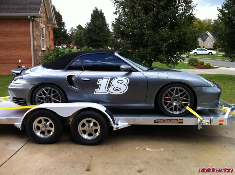 Don’t be fooled when the top is down on this 996TT cab! This customer has a track ready monster that has just been further outfitted with some HRE R40 wheels. The HRE R40 are done in the brushed tinted clear which give it a unique look on the slate gray paint. The front are 18×9 and the rear are 18×12. They have been wrapped with the Nitto NT-01 R Compound tires in a 235/40/18 and 315/30/18. The Nitto NT-01 is a D.O.T.-compliant dry competition radial designed with the weekend road racer in mind. The compound was developed to provide the best balance of traction, consistency, heat cycle performance and longevity. The NT01 delivers fast and consistent lap times for both the professional road-racer and the track-day enthusiast. It has a treadwear of 100 which in comparison, a Michelin PS2 has a 220.