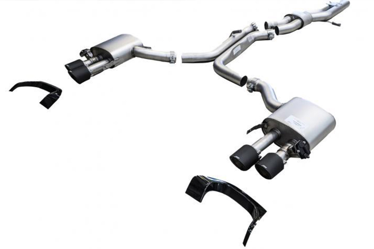 ABT also offers a new exhaust package to maximize the true tone of the 4.0L V8 while maintaining the factory valving function. The ABT exhaust system mimics the factory valves to retain the driving mode functions by utilizing the ABT engine control unit (AEC). Backpressure is significantly reduced by increasing the diameter of the tubing and offering two elegant four-inch matte carbon fiber tips and trim pieces.