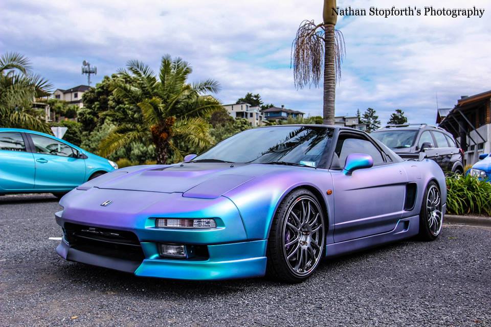 New Zealand called and wanted some new wheels for his crazy chameleon painted Acura NSX (called a Honda there). So we hooked him up nice and good. It is running on Enkei GTC-01 wheels with a massive 8 piston front big brake kit by D2. The car has been lowered on BC Racing Gold Coilovers and features many exterior accutrements. Seibon NSX-R hood, Wings West full kit, JDM Kite Side Scoops, and Seibon NSX-R rear carbon fiber wing. Vivid Racing ships worldwide and carries a wide variety of JDM parts including stuff to outfit your Acura NSX. Check out all Acura Honda NSX Parts here.
