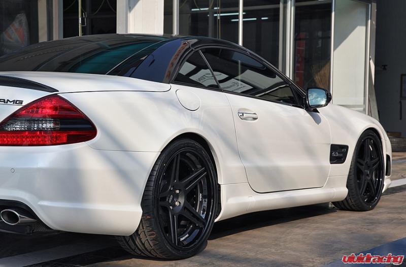 Their pictures make jaws drop. Their wheels are unique and inventive. They change the way a vehicle looks. ADV1 enhances any vehicle with their wheels in both the 1 piece forged or 3 piece forged line. This particular customer’s Mercedes SL63 got a fresh set of the ADV05 Track Spec Wheels. Built in a 20×9.0 and 20×11, the ADV1 wheels have been done in a gloss black outer lip with a matte black center. The center cap and wheel edge logo’s have been finished in white to match the beautiful Mercedes SL paint. With some carbon fiber goodies and a blacked out roof, this SL63 is setup perfect. View more ADV1 Wheels Here and Visit our ADV1 Wheel Gallery Here.