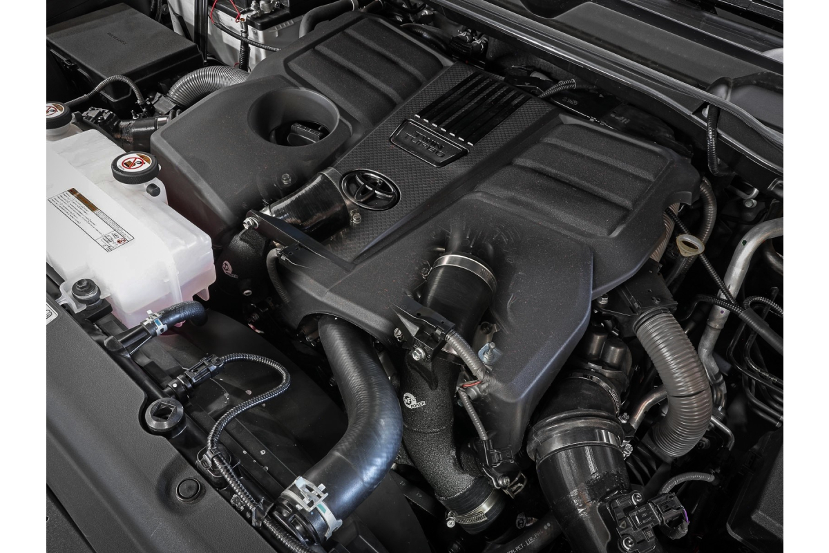 The BladeRunner hot charge pipe kit allows your Tundra’s turbocharged engine to breathe deeper and unleash the additional potential that has been hiding with the factory tubes. In fact, this setup outflows the factory one by up to 17 percent! It includes high-quality, stainless-steel SmartSeal clamps and heavy-duty, 5-ply, polyester-reinforced silicone couplings for superior strength and durability. The BladeRunner charge pipes are finished in a sleek wrinkle black powder-coating with a unique laser-etched aFe power logo for that added custom look. The wrinkle black powder-coated finish is incredibly heat and corrosion-resistant, as well, so it will look good as new for longer. When it comes to engineering for power, performance, protection, and value, aFe Power is the only choice. And now when you pop your Tundra’s hood, everyone else will know you mean business too.