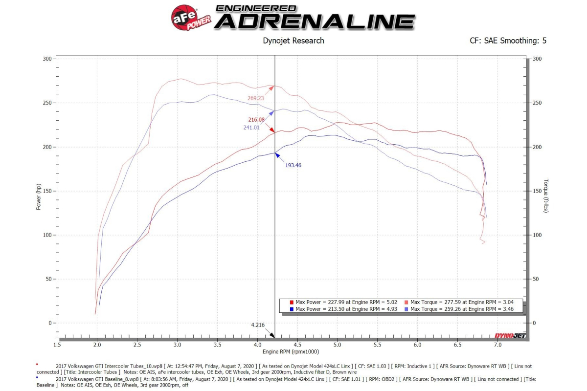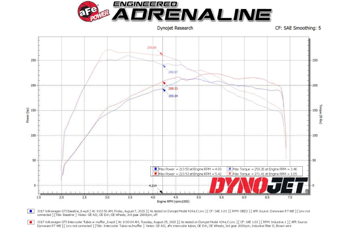 When it comes to engineering for power, performance, protection, and value, aFe Power is at the top of the list. aFe produces a comprehensive line of induction systems and exhausts that work to unleash the true potential of your vehicle. That being said, the brand has just released its popular BladeRunner Aluminum Hot and Cold Charge Pipe Kit for the 2015-2020 Volkswagen GTI (MKVII) with the L4-2.0L (t) engine. There are two kits available: a Black Charge Pipe Kit and a Black Charge Pipe Kit with Muffler Delete. Both deliver noticeable gains in power and outflow the factory tubes by 25 and 34 percent respectively.