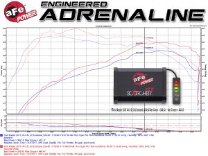 The SCORCHER GT is a plug and play module capable of adding horsepower and torque with a 30 minute installation. Check out the dyno chart below, and compare the baseline Raptor dyno test to the initial results from the aFe SCORCHER. Final tuning has not been completed, but we already have a solid gain of +30hp and +27 lbs. ft of torque at the wheels!