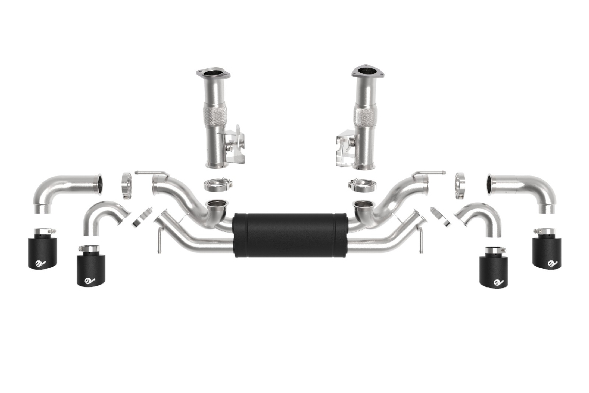 aFe just announced the availability of its new MACH Force-Xp Exhaust with Muffler (No NPP) for the 2020 Corvette C8. The MACH Force-Xp exhaust system is constructed of 3 in. to 2-1/2 in. mandrel-bent TIG-welded 304 stainless steel tubing for the highest levels of strength and durability. This system features a high-flow metallic black muffler. The muffler has a high-temperature metallic black finish for the ultimate corrosion resistance. In addition, it produces a powerful and attractive soundtrack, too, as it unleashes newly available horsepower and torque from the new mid-engined Corvette.