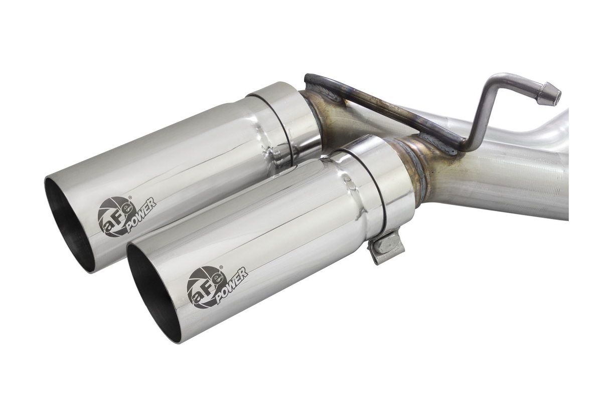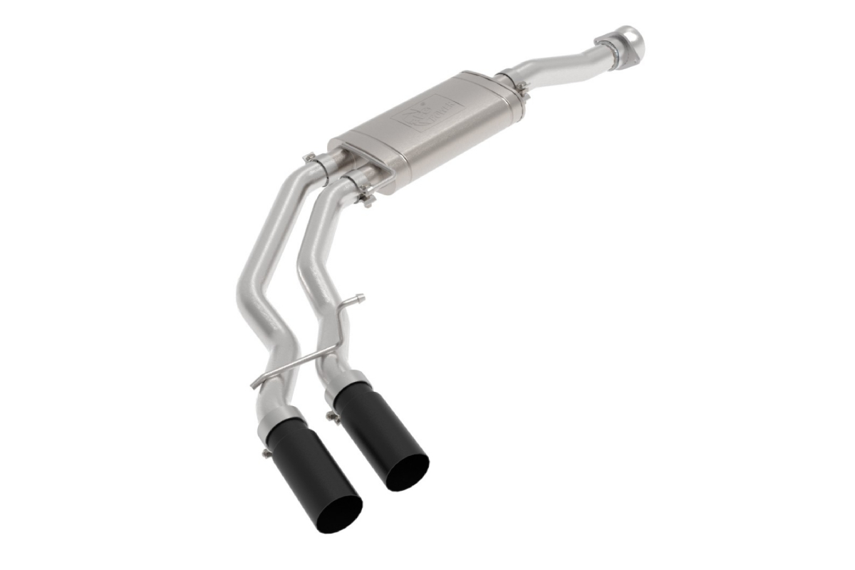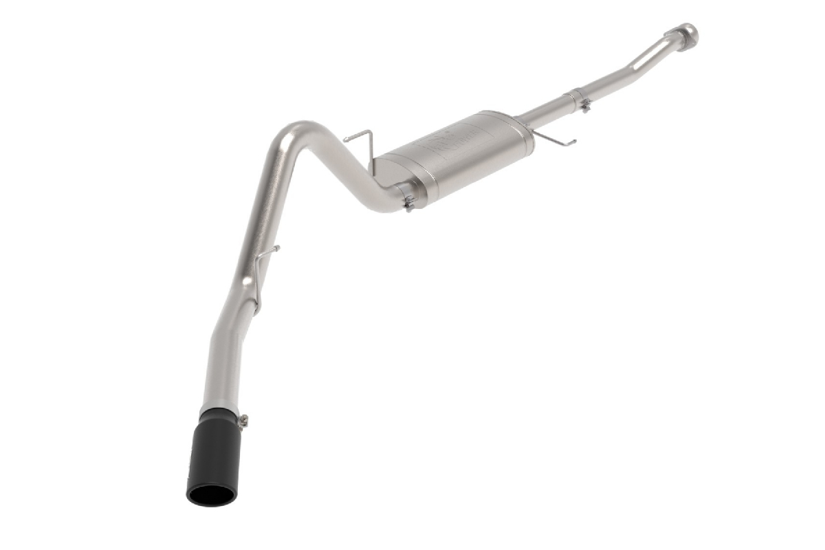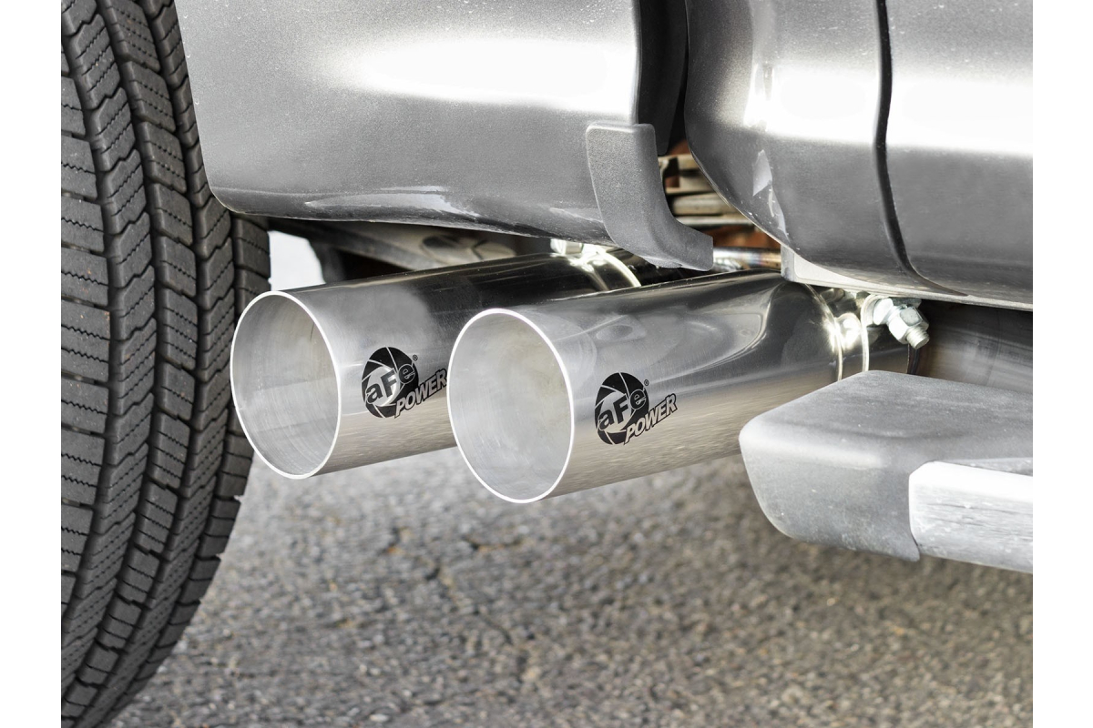 The Apollo GT Series Cat-Back Exhaust is constructed of 3-inch to 3 ½-inch mandrel-bent 409 stainless steel tubing for maximum strength and rigidity. The Rebel Series Cat-Back Exhaust is crafted from 3-inch to 2 ½-inch mandrel-bent 409 stainless steel tubing as well, which results in an ultra-strong construction. Both systems feature a high-flow stainless steel muffler that produces a tantalizing sound suitable to the Ford F-150 truck. Finishing off these exhaust systems is a 4 ½-inch diameter polished or black 304 stainless steel clamp-on exhaust tip. The tip also has the aFe Power logo plate riveted on it for added unique styling.