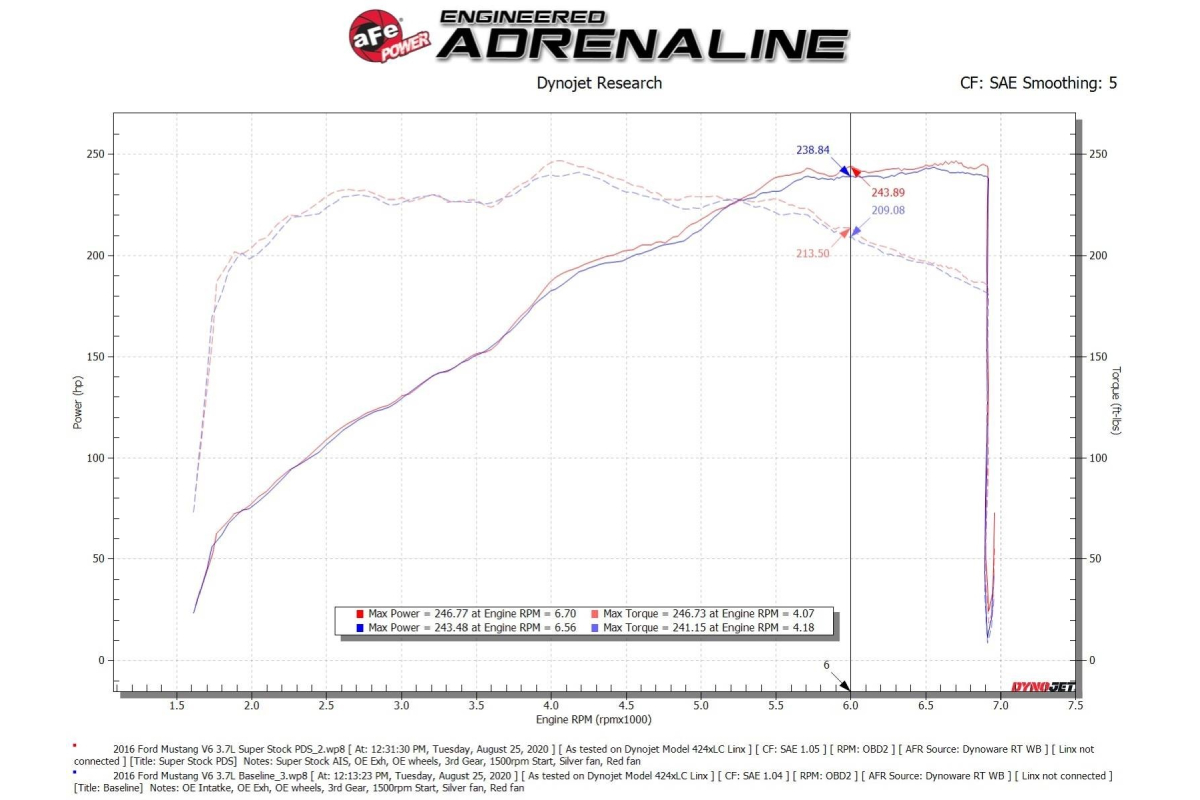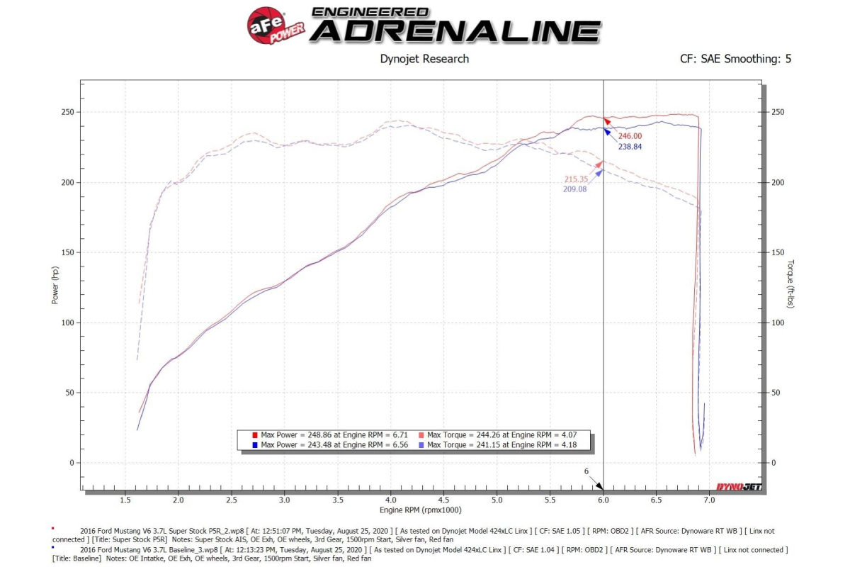 aFe Power is widely recognized for manufacturing some of the best air induction and exhaust systems on the market. With an ever-expanding lineup that covers a wide span of makes and models, aFe is the go-to option for enthusiasts looking to get a little more from their vehicles. Moreover, all aFe products are dyno tested using the company’s very own in-house DynoJet to ensure they deliver the performance you can count on. That said, aFe has just released its Super Stock Induction Series kit for 2015-2017 Ford Mustang 3.7L V6 models.