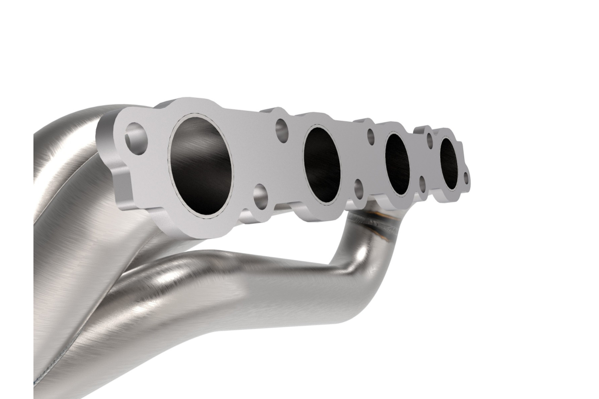 The aFe Twisted Steel 304 Stainless Steel Headers produce gains of up to +18 horsepower and +25 pound-feet of torque, as measured on the company’s own in-house dyno. This is made possible by 4-to-1 mitered merge collectors that decrease turbulence and increase exhaust velocity. Such results in increased horsepower and torque figures, in addition to improved throttle response.
